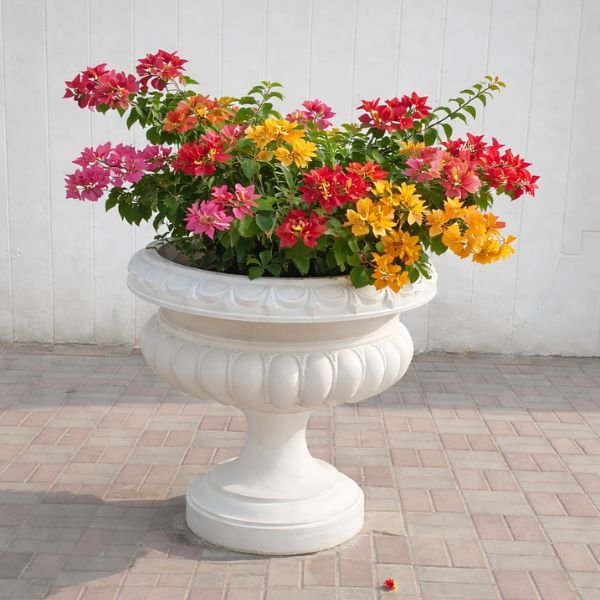 BOUGAINVILLEA MIXED COLOURS IN GRP FLOWER POT – TOTAL HEIGHT 100 CM: Bring vibrant colour and timeless elegance to your