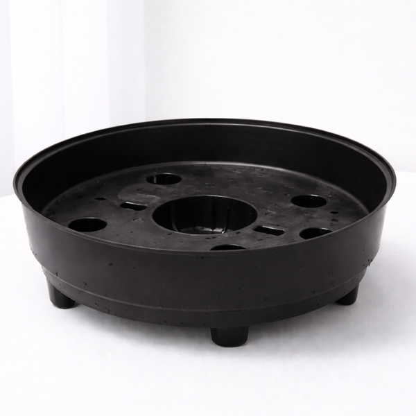 Its round shape and simple black design make it suitable for various pot styles and home décor themes. The raised center structure helps keep the pot stable while distributing weight evenly across the stand. It can be used for ceramic pots, plastic pots, grow bags, or decorative planters.