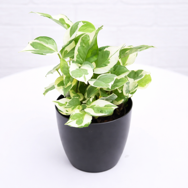 Variegated Money Plant, popularly known as Scindapsus Pictus, is a stunning indoor plant admired for its heart-shaped green leaves beautifully patterned with silver variegation. The unique dotted and splash-like markings give the foliage a rich, textured appearance that instantly enhances any interior setting. Placed in a tabletop pot, hanging basket, or shelf, this plant creates a fresh and elegant decorative look.